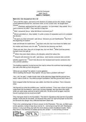 Taken from Lent for Everyone Mark Year B by Tom Wright