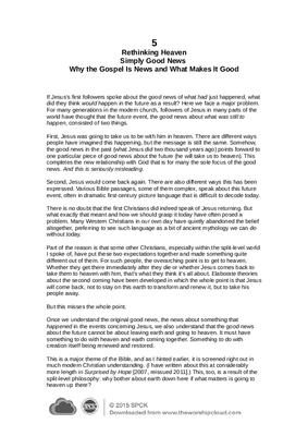 If Jesus’s first followers spoke about the good news of what had just happened, what did they think would happen in the future as a result? Here we face a major problem. For many generations in the modern church, followers of Jesus in many parts of the world have thought that the future event, the good news about what was still to happen, consisted of two things…