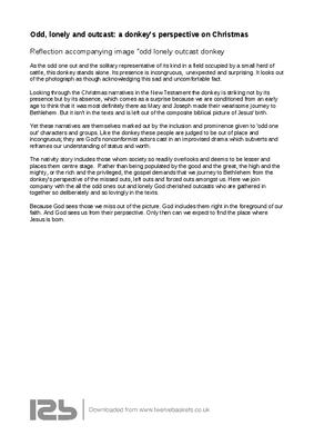 As the odd one out and the solitary representative of its kind in a field occupied by a small herd of cattle, this donkey stands alone. Its presence is incongruous, unexpected and surprising. It looks out of the photograph as though acknowledging this sad and uncomfortable fact. Looking through the Christmas narratives in the New Testament the donkey is striking not by its presence but by its absence, which comes as a surprise because we are conditioned from an early age to think that it was most definitely there as Mary and Joseph made their wearisome journey to Bethlehem. But it isn't in the texts and is left out of the composite biblical picture of Jesus' birth...
