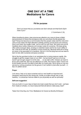 Taken from One Day at a Time: Meditations for Carers by Dorothy M.Stewart