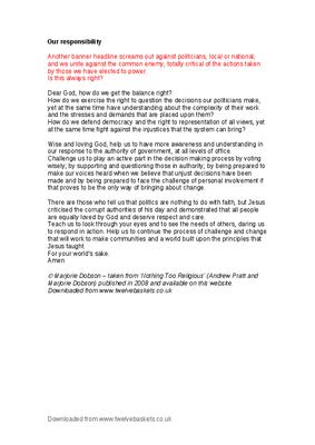 A prayer for wisdom in our response to government, national and local. Suitable for the period before an election.