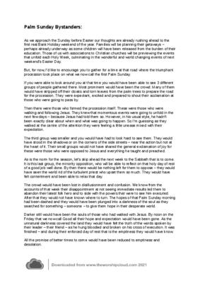 My reflection identifies 3 different groups who were present at the first Palm Sunday and follows their changing fortunes and experiences over that first Easter weekend.