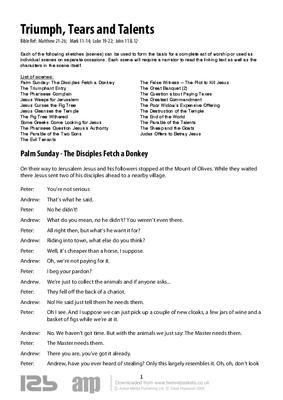 Each of the following sketches (scenes) can be used to form the basis for a complete act of worship or used as individual scenes on separate occasions. Each scene will require a narrator to read the linking text as well as the characters in the scene itself.
