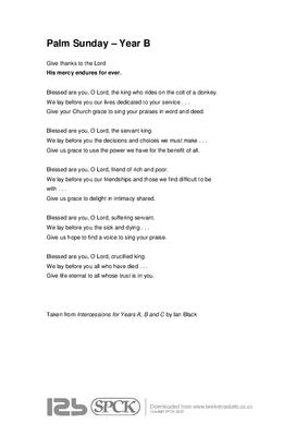 Give thanks to the Lord His mercy endures for ever. Blessed are you, O Lord, the king who rides on the colt of a donkey. We lay before you our lives dedicated to your service . . .