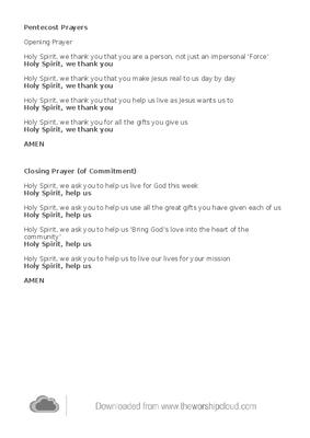 Responsive prayers for opening and ending of service on Pentecost Sunday or any service focusing on the Holy Spirit