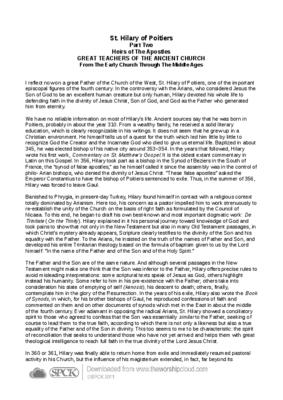 I reflect now on a great Father of the Church of the West, St. Hilary of Poitiers, one of the important episcopal figures of the fourth century. In the controversy with the Arians, who considered Jesus the Son of God to be an excellent human creature but only human, Hilary devoted his whole life to defending faith in the divinity of Jesus Christ, Son of God, and God as the Father who generated him from eternity…