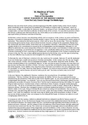 Between the end of the fourth century and the beginning of the fifth, another Father of the Church made a great contribution to the spread and consolidation of Christianity in northern Italy: St. Maximus, whom we come across in 398— a year after St. Ambrose’s death— as bishop of Turin. Very little is known about him; in compensation, we have inherited a collection of about ninety of his sermons…