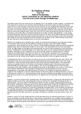 The Father of the Church to whom we turn our attention now is St. Paulinus of Nola. Paulinus, a contemporary of St. Augustine to whom he was bound by a firm friendship, exercised his ministry at Nola in Campania, where he was a monk and later a priest and a bishop. However, he was originally from Aquitaine, in the south of France, to be precise, Bordeaux, where he was born into a high-ranking family…