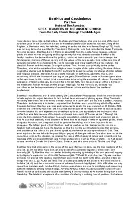 I now discuss two ecclesiastical writers, Boethius and Cassiodorus, who lived in some of the most turbulent years in the Christian West and in the Italian peninsula in particular. Odoacer, King of the Rugians, a Germanic race, had rebelled, putting an end to the Western Roman Empire (476), but it was not long before he was killed by Theodoric’s Ostrogoths, who had controlled the Italian Peninsula for some decades…