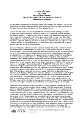 We resume the presentation of important writers of the Eastern and Western Church in the Middle Ages because in their lives and writings we see, as in a mirror, what it means to be Christian. One such luminous figure is St. Odo, abbot of Cluny…