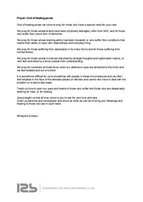 We pray for those whose brains have been physically damaged, often from birth, and for those who suffer from some form of dementia.