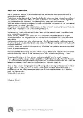 Help us to be more aware of the problems faced by those who work to grow and rear our food and to offer them our compassionate understanding and support.