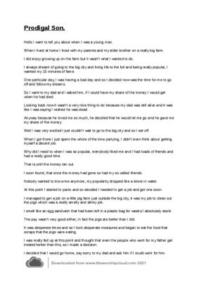 A puppet sketch based upon the story of the Prodigal son for use in Church or Assembly