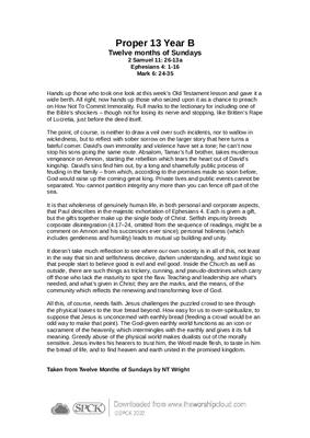 Hands up those who took one look at this week’s Old Testament lesson and gave it a wide berth. All right; now hands up those who seized upon it as a chance to preach on How Not To Commit Immorality. Full marks to the lectionary for including one of the Bible’s shockers – though not for losing its nerve and stopping, like Britten’s Rape of Lucretia, just before the deed itself…