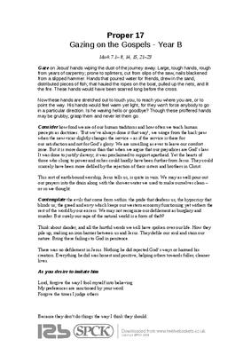 Taken from Gazing on the Gospels Year B By Judith Dimond