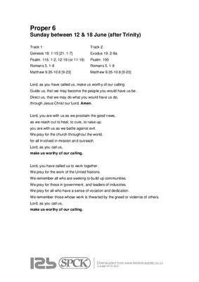 Genesis 18. 1-15 [21. 1-7] Exodus 19. 2-8a Psalm. 116. 1-2, 12-19 (or 11-18) Psalm. 100 Romans 5. 1-8 Matthew 9.35-10.8 [9-23]