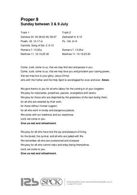 Genesis 24. 34-38,42-49, 58-67 Zechariah 9. 9-12 Psalm. 45. 10-17 or Ps. 145. 8-14 Canticle: Song of Sol. 2. 8-13 Romans 7. 15-25a Matthew 11. 16-19,25-30