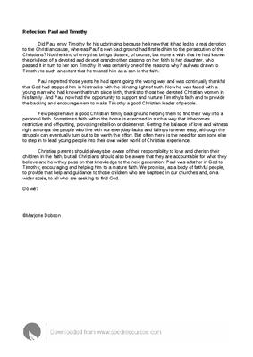 Did Paul envy Timothy for his upbringing because he knew that it had led to a real devotion to the Christian cause, whereas Paul’s own background had first led him to the persecution of the Christians? Not the kind of envy that brings dissent, of course, but more a wish that he had known the privilege of a devoted and devout grandmother passing on her faith to her daughter, who passed it in turn to her son Timothy. It was certainly one of the reasons why Paul was drawn to Timothy to such an extent that he treated him as a son in the faith.