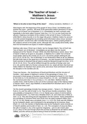 Where is he who is born King of the Jews? Infancy narratives, Matthew 1—2
