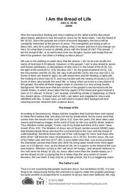 After the miraculous feeding and Jesus walking on the water and the discussion about bread, attention is now focused on Jesus by his direct claim, ‘I am the bread of life’ (6:35). Since the gospels are a form of ancient biography, the focus will be constantly redirected at the person of Jesus. The evangelists are trying to tell us about him, who he is and what he is doing, what it means and how it can change our lives. So what does it mean to identify Jesus with the Bread of Life? This phrase, ‘I am the bread of life’, is so well known from our liturgies, hymns and songs that we take it for granted—but what is it telling us about Jesus?…