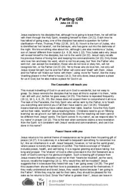 Jesus explains to his disciples that, although he is going to leave them, he will still be with them through the Holy Spirit, revealing himself to them (14:21). Each time he has talked of going away, one of the disciples has asked a question for further clarification—Peter, Thomas, Philip (13:36; 14:5, 8). Now it is the turn of Judas, who is identified as ‘not Iscariot’, not the betrayer, who has gone out into the darkness of the night…