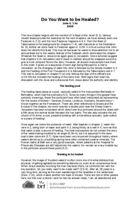 This new chapter begins with the mention of ‘a feast of the Jews’ (5:1). Various Jewish feasts provide the backdrop for the next chapters: we have already seen one Passover in 2:13, and the next Passover happens in 6:4. Then the feast of Tabernacles is the background for chapters 7—8, with Hanukkah or the Dedication for 10, before we come back to Passover again in 11:55…