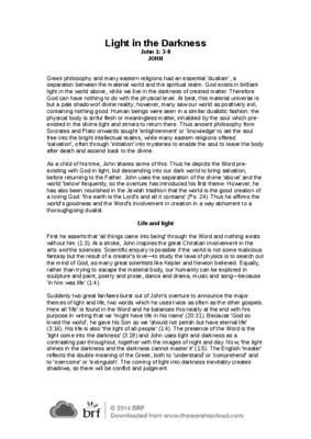 Greek philosophy and many eastern religions had an essential ‘dualism’, a separation between the material world and the spiritual realm. God exists in brilliant light in the world above, while we live in the darkness of created matter…