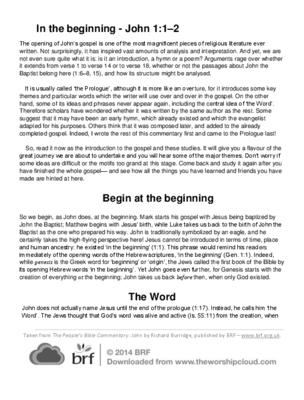 The opening of John’s gospel is one of the most magnificent pieces of religious literature ever written. Not surprisingly, it has inspired vast amounts of analysis and interpretation. And yet, we are not even sure quite what it is: is it an introduction, a hymn or a poem? Arguments rage over whether it extends from verse 1 to verse 14 or to verse 18, whether or not the passages about John the Baptist belong here (1:6–8, 15), and how its structure might be analysed.