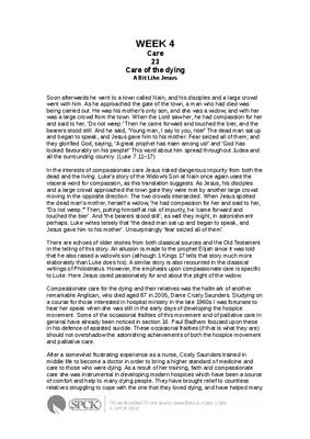 Soon afterwards he went to a town called Nain, and his disciples and a large crowd went with him. As he approached the gate of the town, a man who had died was being carried out. He was his mother’s only son, and she was a widow; and with her was a large crowd from the town. When the Lord saw her, he had compassion for her and said to her, ‘Do not weep.’ Then he came forward and touched the bier, and the bearers stood still. And he said, ‘Young man, I say to you, rise!’ The dead man sat up and began to speak, and Jesus gave him to his mother. Fear seized all of them; and they glorified God, saying, ‘A great prophet has risen among us!’ and ‘God has looked favourably on his people!’ This word about him spread throughout Judea and all the surrounding country. (Luke 7.11–17)...