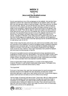 Now he was teaching in one of the synagogues on the sabbath. And just then there appeared a woman with a spirit that had crippled her for eighteen years. She was bent over and was quite unable to stand up straight. When Jesus saw her, he called her over and said, ‘Woman, you are set free from your ailment.’ When he laid his hands on her, immediately she stood up straight and began praising God. But the leader of the synagogue, indignant because Jesus had cured on the sabbath, kept saying to the crowd, ‘There are six days on which work ought to be done; come on those days and be cured, and not on the sabbath day.’ But the Lord answered him and said, ‘You hypocrites! Does not each of you on the sabbath untie his ox or his donkey from the manger, and lead it away to give it water? And ought not this woman, a daughter of Abraham whom Satan bound for eighteen long years, be set free from this bondage on the sabbath day?’ When he said this, all his opponents were put to shame; and the entire crowd was rejoicing at all the wonderful things that he was doing. (Luke 13.10–17)...