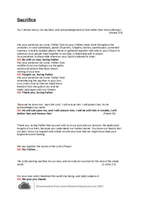 A prayerful liturgy for church or small group use, based on the theme of 'Sacrifice' - on one side A4 for ease of copying