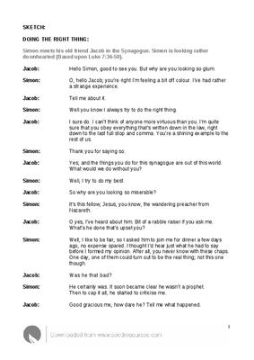 Simon meets his old friend Jacob in the Synagogue. Simon is looking rather downhearted (Based upon Luke 7:36-50).