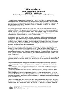 Perhaps the overall significance of Bonhoeffer’s ‘letters to London’ is that they could have been addressed to any teenager in most neighbourhoods and cities today…