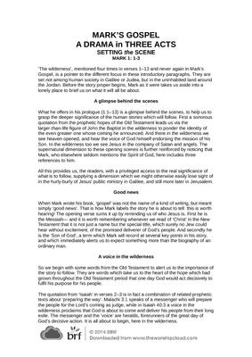 ‘The wilderness’, mentioned four times in verses 1–13 and never again in Mark’s Gospel, is a pointer to the different focus in these introductory paragraphs. They are set not among human society in Galilee or Judea, but in the uninhabited land around the Jordan. Before the story proper begins, Mark as it were takes us aside into a lonely place to brief us on what it will all be about.