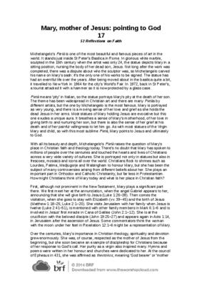 Michelangelo’s Pietà is one of the most beautiful and famous pieces of art in the world. It stands just inside St Peter’s Basilica in Rome. In glorious white marble, sculpted in the 15th century when the artist was only 24, the statue depicts Mary in a sitting position, nursing the body of her dead son, Jesus…