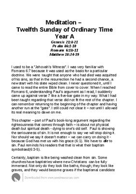Meditation – Twelfth Sunday of Ordinary Time Year A