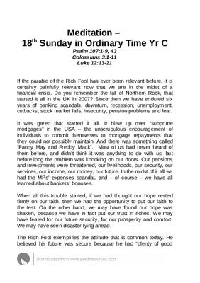Meditation – 18th Sunday in Ordinary Time Yr C