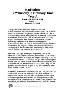 Twenty-seventh Sunday in Ordinary Time - Year A