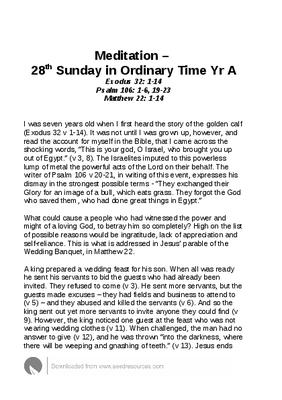 Meditation – 28th Sunday in Ordinary Time Yr A
