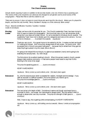 Worship Leader Today we have a bit of a surprise for you. The Church Leadership Team has been trying to think of ways to inspire the congregation. We know that many of you will remember prize-giving from your days at Sunday School. So we’ve decided to introduce church awards. The