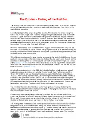 This reflection on the parting of the Red Sea explores not only its historical significance but also how it can be understood metaphorically as pointing to the reality of God’s redemption of His people from slavery to sin through the work of Christ.