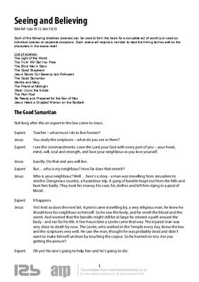 Each of the following sketches (scenes) can be used to form the basis for a complete act of worship or used as individual scenes on separate occasions. Each scene will require a narrator to read the linking text as well as the characters in the scene itself.