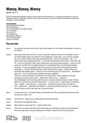 Each of the following sketches (scenes) can be used to form the basis for a complete act of worship or used as individual scenes on separate occasions. Each scene will require a narrator to read the linking text as well as the characters in the scene itself.