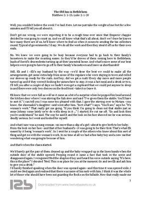 This is one of a number of monologues that I have written for use in worship or some other reflective purpose. This one deals with the events at the Inn in Bethlehem at the time of the Nativity from the point of view of the Innkeeper's Wife.