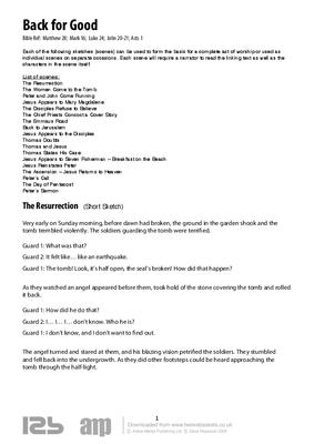 Each of the following sketches (scenes) can be used to form the basis for a complete act of worship or used as individual scenes on separate occasions. Each scene will require a narrator to read the linking text as well as the characters in the scene itself.