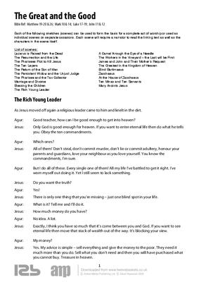 Each of the following sketches (scenes) can be used to form the basis for a complete act of worship or used as individual scenes on separate occasions. Each scene will require a narrator to read the linking text as well as the characters in the scene itself.
