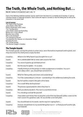 Each of the following sketches (scenes) can be used to form the basis for a complete act of worship or used as individual scenes on separate occasions. Each scene will require a narrator to read the linking text as well as the characters in the scene itself.