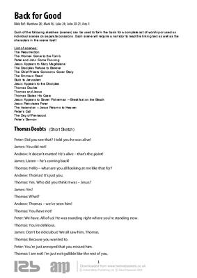 Permission is hereby given for this material to be performed before a live non-paying audience or for any non-profit or charitable occasion. This sketch may be printed by the purchaser for use by amateurs within their organisation only on condition that such copies are not given, lent or sold to any other organisation or individual. Reproduction or transmission in any form or by any means other than stated above is forbidden without written permission from the publisher: Active Media Publishing Ltd, 71 Lowther Road, Dunstable, Bedfordshire LU6 3LN Tel: 01582 603413