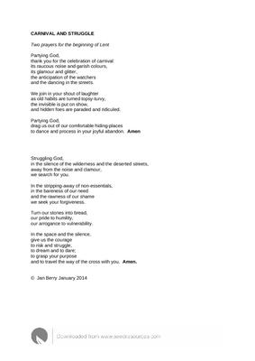 Two prayers; thanks and confession for the beginning of Lent, on the contrasting themes of carnival and struggle.