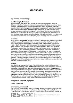 ‘Apostle’ means ‘one who is sent’. It could be used of an ambassador or official delegate. In the New Testament it is sometimes used specifically of Jesus’ inner circle of twelve, but Paul sees not only himself but several others outside the Twelve as ‘apostles’, the criterion being whether the person had personally seen the risen Jesus. Jesus’ own choice of twelve close associates symbolized his plan to renew God’s people, Israel (who traditionally thought of themselves as having twelve tribes); after the death of Judas Iscariot (Matthew 27.5; Acts 1.18), Matthias was chosen by lot to take his place, preserving the symbolic meaning. During Jesus’ lifetime they, and many other followers, were seen as his ‘disciples’, which means ‘pupils’ or ‘apprentices’...